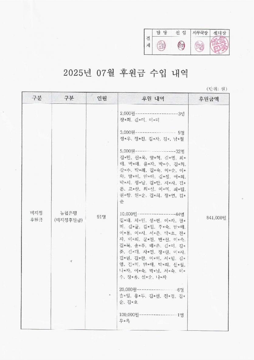 2025년 7월 후원금 수입, 사용 내역 보고 페이지 정보 작성자 햇빛촌 조회 748회 작성일 25-08-22 17:48 본문 2025년 7월 후원금 수입, 사용 내역 보고 목록 이전글2025년 8월 햇빛촌 소식지 25.09.11 다음글2025년 7월 햇빛촌 소식지 25.08.09 댓글목록 댓글목록 등록된 댓글이 없습니다.