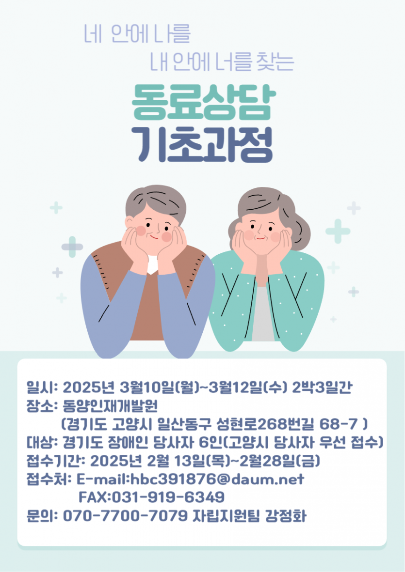 2025년 집단 동료상담 기초과정 참여자를 모집하오니 많은 관심과 참여부탁드립니다.