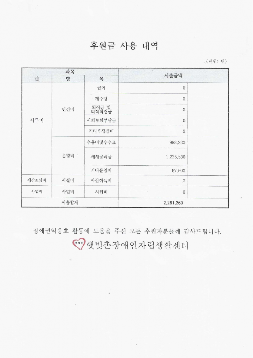 2025년 1월 후원금 수입, 사용 내역보고 페이지 정보 작성자 햇빛촌 조회 1,094회 작성일 25-02-14 10:34 본문 2025년 1월 후원금 수입, 사용 내역보고 목록 이전글2025년 정기총회 공고 25.02.17 다음글2025년 권리중심 중증장애인 맞춤형 공공일자리 참여자 모집 25.02.13 댓글목록 댓글목록 등록된 댓글이 없습니다.