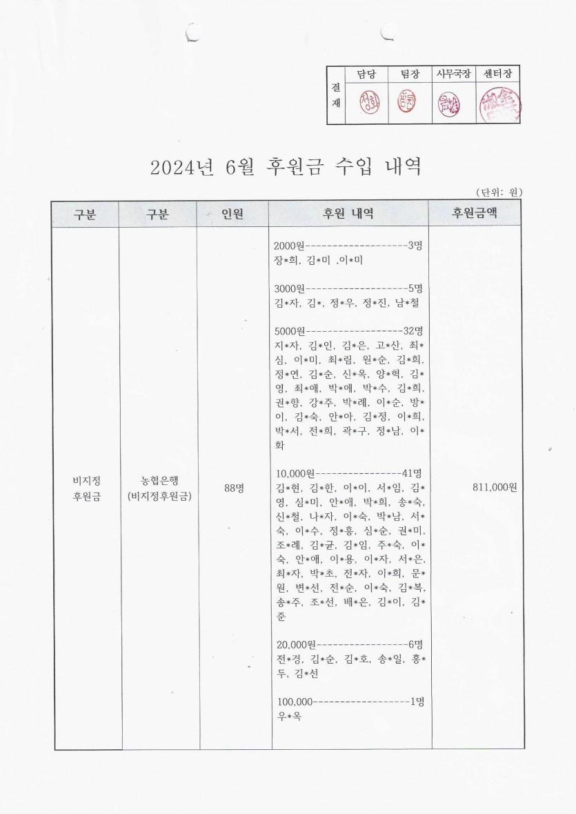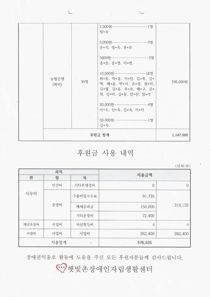 2024년 6월 후원금 수입, 사용 내역 보고 페이지 정보 작성자 햇빛촌 조회 1,497회 작성일 24-07-22 10:38 본문 2024년 6월 후원금 수입, 사용 내역 보고 목록 이전글2024년 7월 햇빛촌 소식지 24.08.13 다음글2024년 6월 햇빛촌 소식지 24.07.21 댓글목록 댓글목록 등록된 댓글이 없습니다.