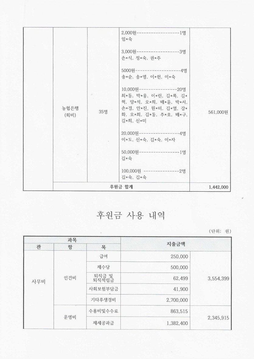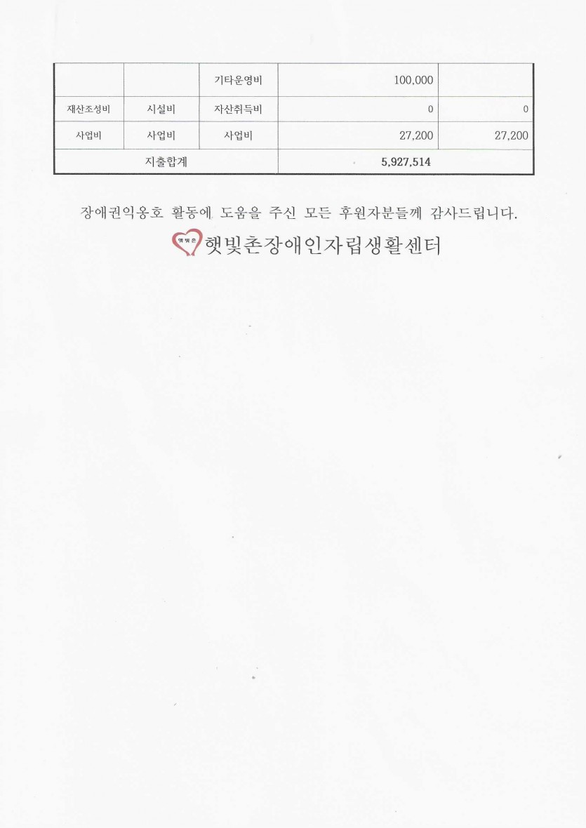 2024년 7월 후원금 수입, 사용 내역 보고 페이지 정보 작성자 햇빛촌 조회 1,426회 작성일 24-08-27 15:04 본문 2024년 7월 후원금 수입, 사용 내역 보고 목록 이전글2024년 8월 햇빛촌 소식지 24.09.13 다음글2024년 7월 햇빛촌 소식지 24.08.13 댓글목록 댓글목록 등록된 댓글이 없습니다.