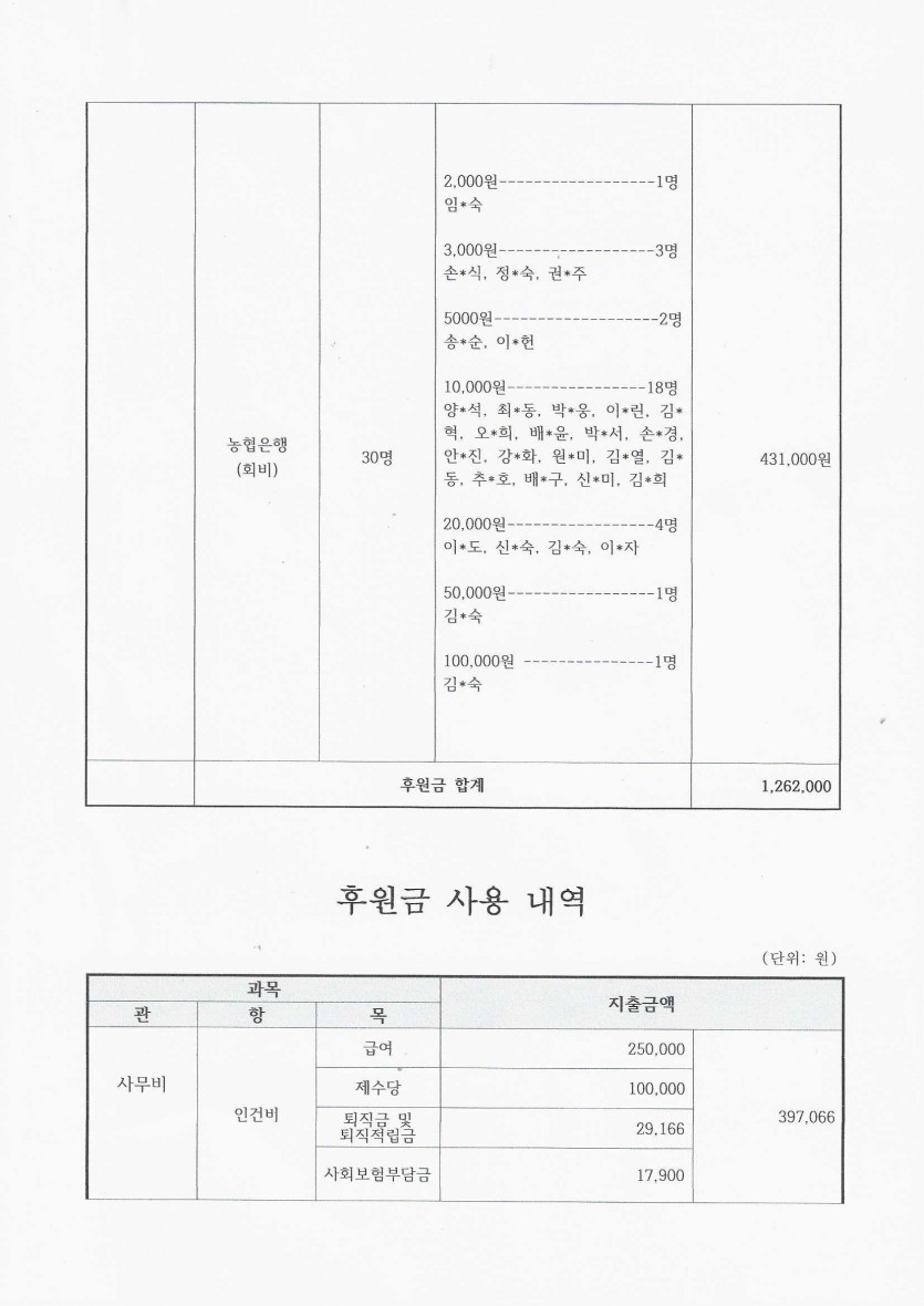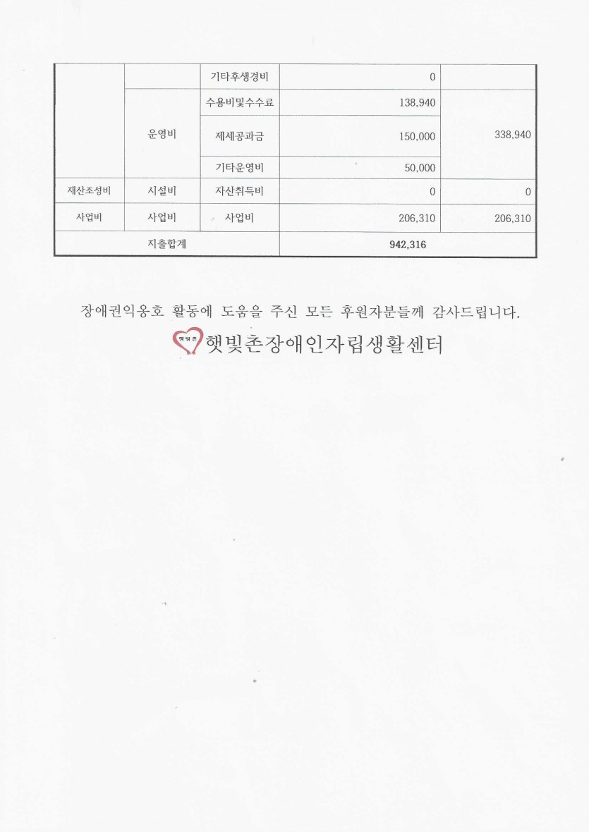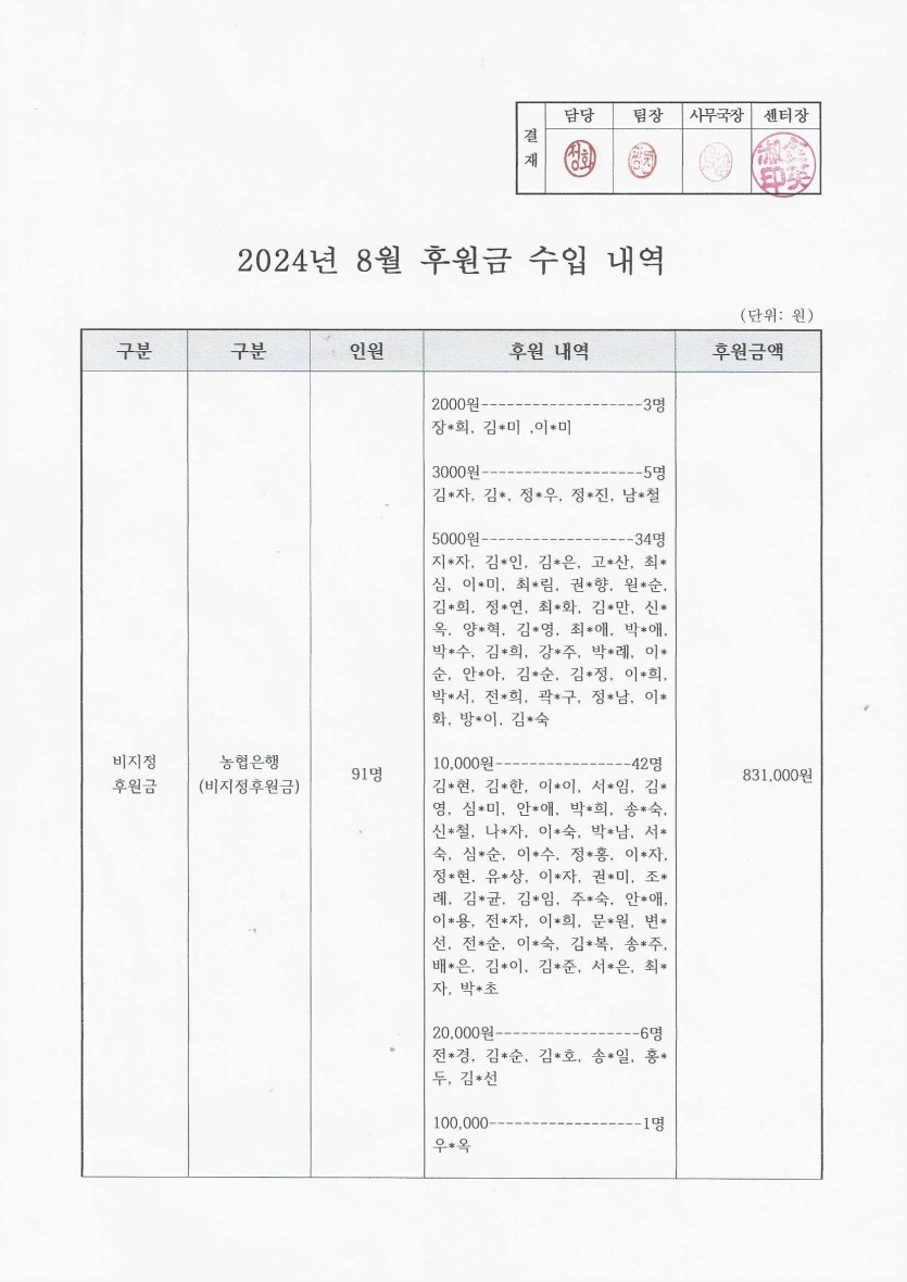 2024년 8월 후원금 수입, 사용 내역 페이지 정보 작성자 햇빛촌 조회 1,385회 작성일 24-09-26 16:49 본문 2024년 8월 후원금 수입, 사용 내역 목록 이전글2024년 9월 햇빛촌 소식지 24.10.11 다음글2024년 8월 햇빛촌 소식지 24.09.13 댓글목록 댓글목록 등록된 댓글이 없습니다.
