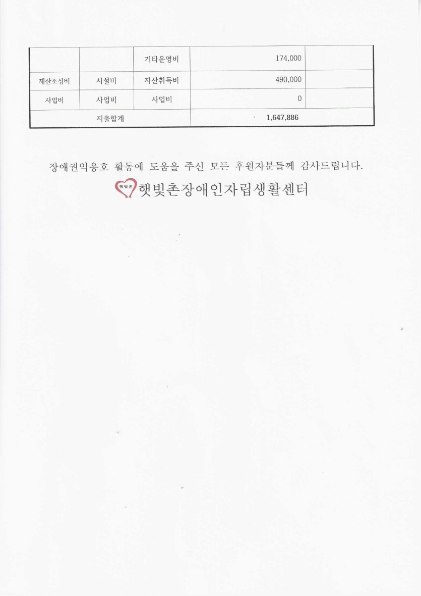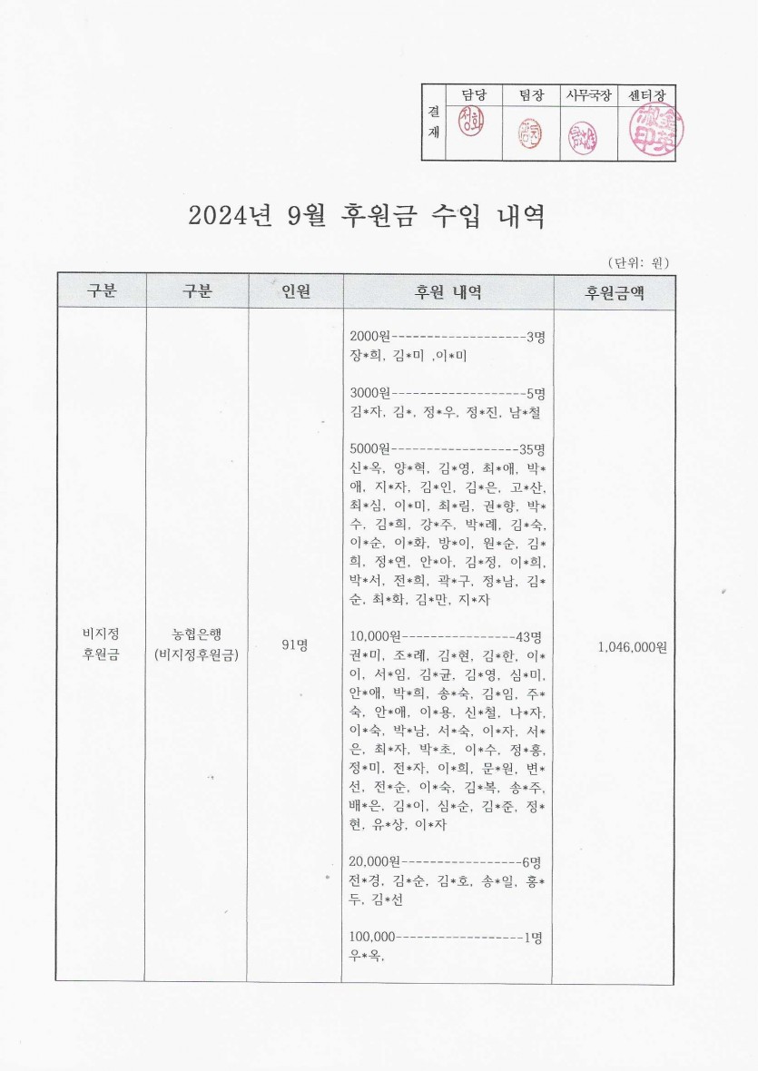 2024년 9월 후원금 수입, 사용내역 보고 페이지 정보 작성자 햇빛촌 조회 1,362회 작성일 24-11-09 11:36 본문 2024년 9월 후원금 수입, 사용내역 목록 이전글2024년 10월 후원금 수입, 사용 내역 보고 24.11.09 다음글2024년 햇빛촌 장애인권주간 행사 안내 24.10.27 댓글목록 댓글목록 등록된 댓글이 없습니다.