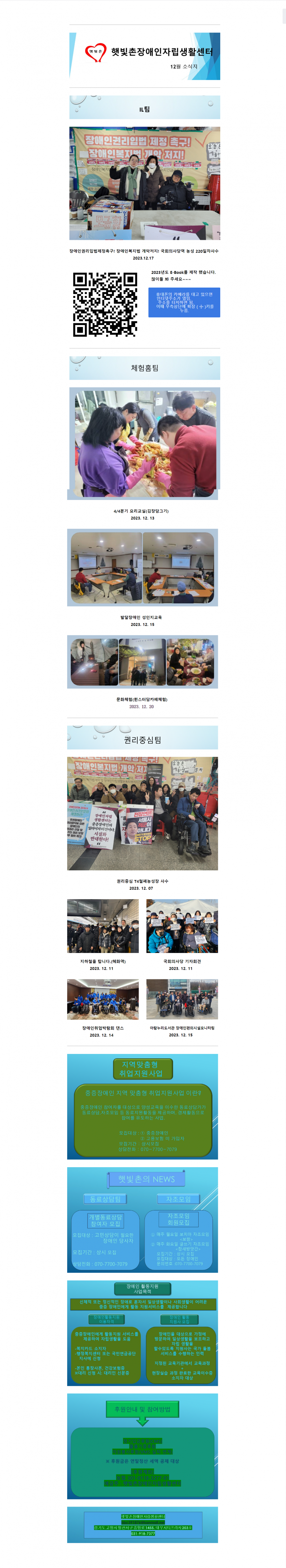 2023년 12월 햇빛촌 소식지 페이지 정보 작성자 햇빛촌 조회 1,557회 작성일 24-01-29 13:46 본문 2023년 12월 햇빛촌 소식지 목록 이전글2023년 11월 후원금 수입내역보고 24.01.31 다음글2024년 1차 통합 운영위원회 진행 공지 24.01.24 댓글목록 댓글목록 등록된 댓글이 없습니다.