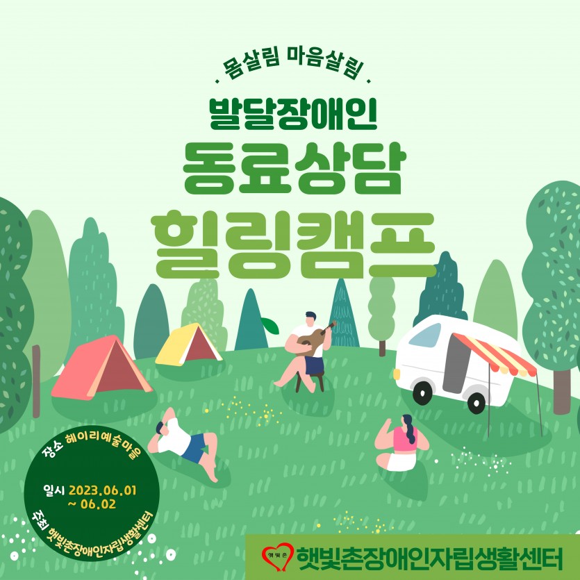 2023 발달장애 동료상담 힐링캠프 영상 페이지 정보 작성자 햇빛촌 조회 1,598회 작성일 23-06-02 17:14 본문 2023 발달장애 동료상담 힐링캠프 목록 이전글2023년 4월 후원금 수입내역보고 23.06.16 다음글2023년 3~4월 햇빛촌 소식지 23.06.02 댓글목록 댓글목록 등록된 댓글이 없습니다.
