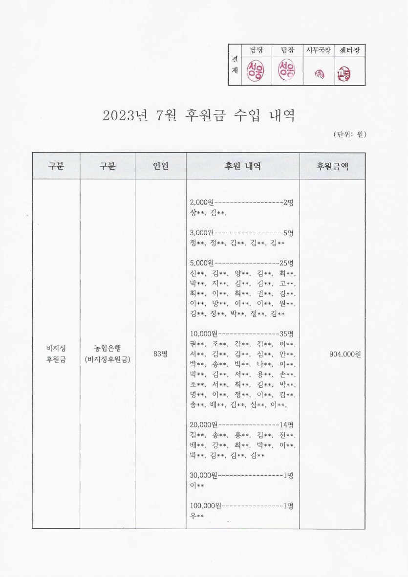 2023년 7월 후원금 수입내역보고 페이지 정보 작성자 햇빛촌 조회 1,567회 작성일 23-08-21 17:18 본문 2023년 7월 후원금 수입내역보고 목록 이전글2023년 햇빛촌 임시 운영위원회 개최 공지 23.09.07 다음글2023년 햇빛촌 2차 운영위원회 개최 공지 23.07.24 댓글목록 댓글목록 등록된 댓글이 없습니다.