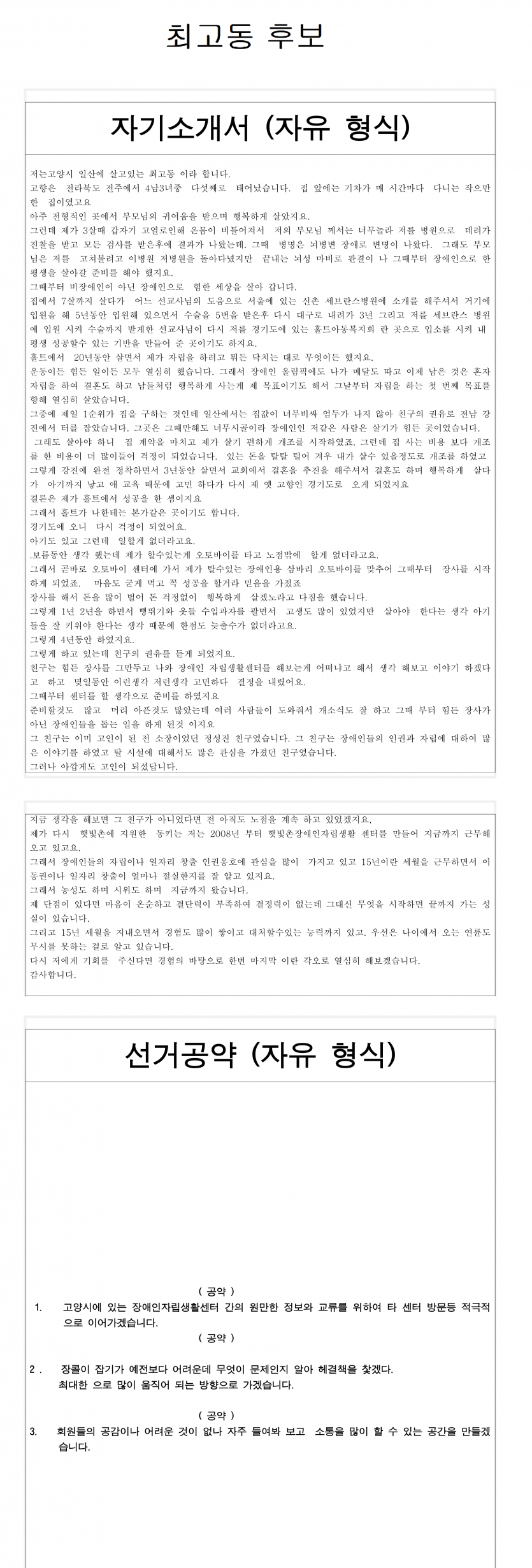 햇빛촌「고양시지부 대표」선거 후보 소개