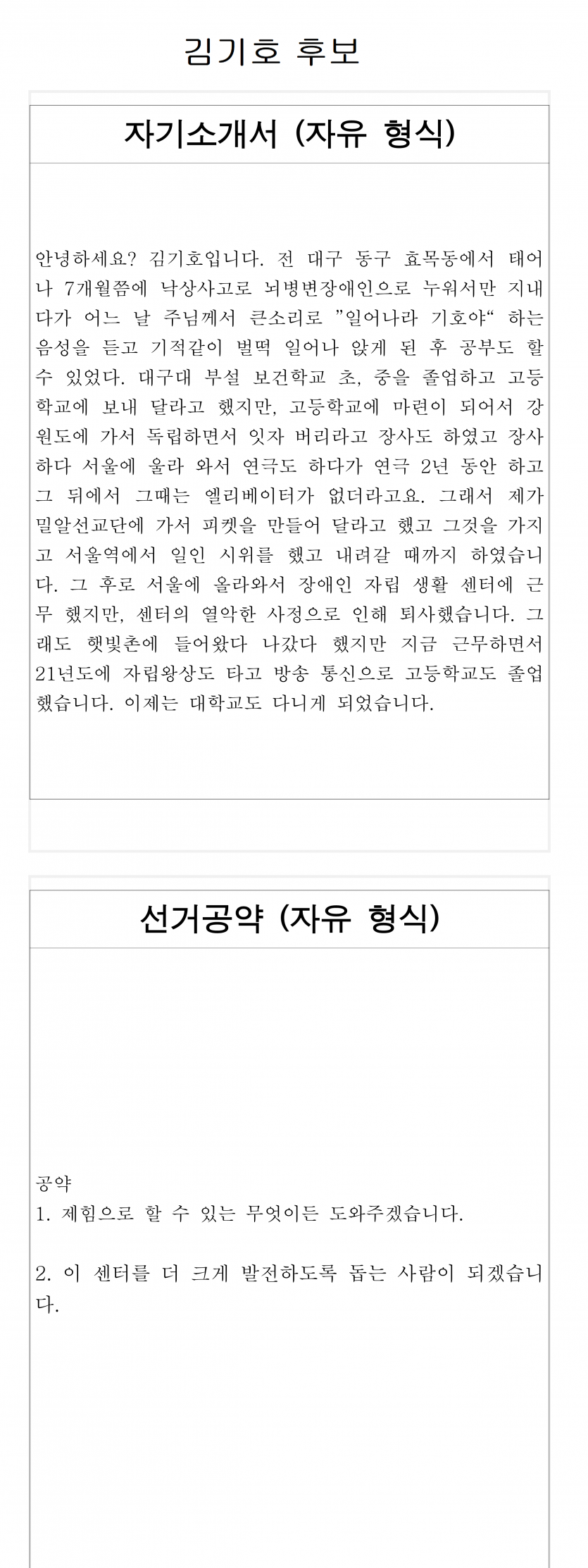 2023.01.30.~2023.02.12(14일)간 진행된 햇빛촌장애인자립생활센터 센터장 후보등록에