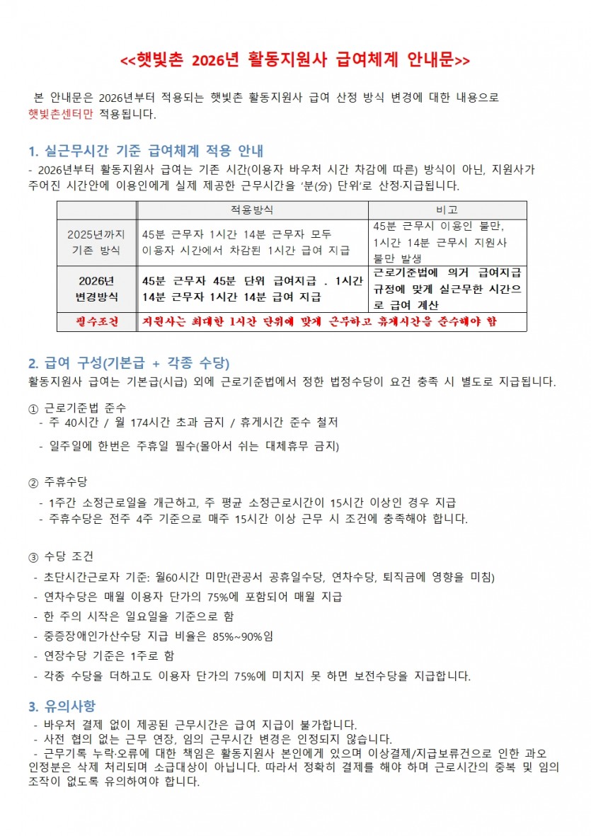 햇빛촌 2026년 활동지원사 급여체계 안내문 페이지 정보 작성자 햇빛촌 조회 683회 작성일 25-12-16 10:42 본문 . 목록 이전글휠체어 장애인의 첫 우주여행…"지금껏 가장 멋진 경험" 25.12.22 다음글장애연금과 장애인연금 차이 및 중복수급 가능성 25.12.15 댓글목록 댓글목록 등록된 댓글이 없습니다.